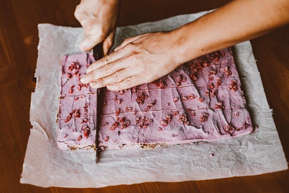 This comprehensive guide provides detailed instructions for cutting an 8-inch cake efficiently. It includes downloadable resources like PDFs and printable templates to ensure precise slicing. The guide covers various serving sizes, from standard 1-inch wedges to generous 2-inch portions, accommodating both small and large gatherings. Visual aids, such as diagrams and step-by-step illustrations, are included to simplify the process. The guide also offers tips for achieving uniform slices, minimizing crumbs, and handling layered or chilled cakes. Whether you’re a professional caterer or a home baker, this guide ensures that every slice is perfectly portioned and visually appealing. Its versatility makes it suitable for events of all sizes, guaranteeing that everyone enjoys an equal share of the cake. The resources are easy to follow, making cake cutting a stress-free experience.