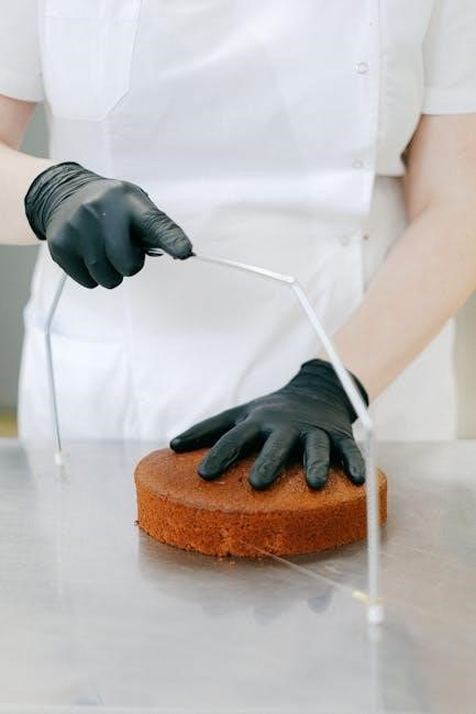 A visual guide provides step-by-step diagrams for precise cake cutting, while printable resources like templates ensure accuracy. Downloadable tools help achieve professional results effortlessly at home.